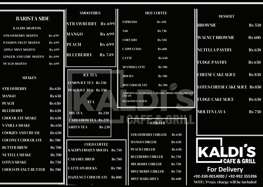 Kaldis Cafe & Grill Menu